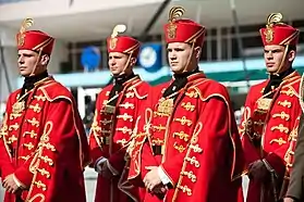 | Цвета | красный (церемониальная одежда и береты) |