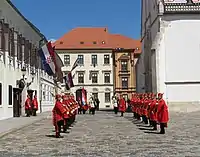 Церемония смены караула проводится военнослужащими почётной роты в Загребе на территории между Банскими дворами и Церковью Святого Марка по субботам и в дни государственных праздников в 12:00 по местному времени, в период между 27 мая и 1 октября. В церемонии участвуют три офицера в исторической чёрно-белой униформе и 26 солдат в красной униформе. Офицеры, командир караула и сменщики носят офицерские кинжалы в кожаных ножнах, солдаты носят карабины M59/66.