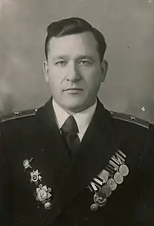 Награждён орденами Ленина (1953), Красного Знамени (1947), Нахимова II степени (1945), двумя орденами Отечественной войны I степени (1944, 1985), Красной Звезды (1944, 1950), медалями.