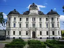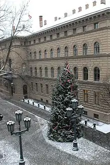 - На Замковой улице (улица Пилс, д. 16) в 1877 году было воздвигнуто здание Государственного банка в смешанных формах английского неоренессанса, с которым любил экспериментировать архитектор Янис Бауманис.
