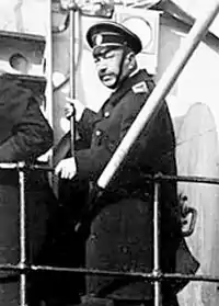 ![]() М. К. Бахирев на кормовом мостике линкора типа «Севастополь» (1916—1917) | |
