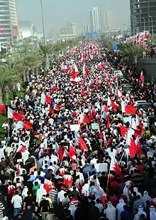 В 2011 году в стране произошли протесты, вдохновленные региональной Арабской весной.[11] Правящая королевская семья Бахрейна аль-Халифа подверглась критике за нарушение прав человека в отношении различных групп, включая диссидентов, деятелей политической оппозиции и большинства населения мусульман-шиитов.[12]
