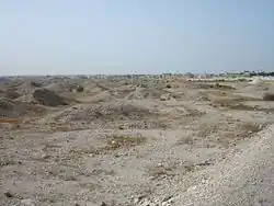 Памятником религиозно-исторического наследия Бахрейна являются сохранившиеся древние некрополи, занимающие обширные пространства в северной части острова. Возникновение их исследователи относят к рубежу четвёртого и третьего тысячелетий до н. э. Число захоронений, в том числе знати и воинов со всего Шумера, исчислялось сотнями тысяч. По мнению исследователей, иногда усыпальницы заказывались заранее и некоторые из них так и остались пустыми. Курганы варьируются по размерам. Самые ранние из них были овальной формы, высотой около 1,5 м. В каменной камере обустраивались ниши для погребальных предметов. В «элитных» усыпальницах устраивали две, расположенные одна над другой, погребальные камеры, облицованные камнем. Всё сооружение окружалось каменной стеной. Пространство между стеной и камерами и поверх них заполнялось щебнем. Высота таких курганов достигала 15 метров. Традиция захоронений на Бахрейне сохранилась до эпохи эллинизма. Последние из них датируются первыми веками н. э.[39]. Часть захоронений была утрачена не только из-за естественной эрозии, но и в связи с началом в 1950-х годах освоения свободных территорий для развития городских поселений.