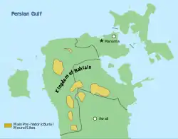 На территории Бахрейна находился Дильмун, важный торговый центр бронзового века, соединявший Месопотамию и долину Инда.[22] Позже Бахрейном правили ассирийцы и вавилоняне.[23]
