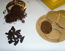 Кусочки или щепочки натурального, ароматизированного дерева, которые пропитаны эфирными маслами или экстрактами разных ароматических веществ. Например кусочки сандалового дерева, пропитанные эфирными маслами пачули и обработанные экстрактами натурального мускуса.