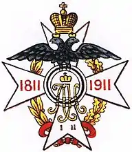 - Знаки отличия (нагрудные у офицеров, на головные уборы у нижних чинов) с надписью: