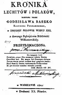 Хроника Г. Башко известна в 7 списках, из которых один находился в Санкт-Петербурге в Императорской публичной библиотеке. Издана хроника Зоммерсбергом в Бреслау в 1729—1732 гг. и в Варшаве в 1752 г. Переведена на польский язык Ипполитом Ковнацким, под названием «Kronika Lechitów Polaków, napisana przez Godzislawa Baszko…» (Варшава, 1822).