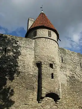 Построена в XIV веке. В 1577 году верх башни был поврежден во время бомбардировки русскими войсками в ходе Ливонской войны (1558—1583), а затем рухнул.