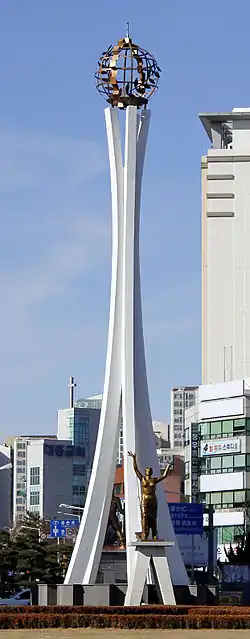 Скульптура 2 мужчин символизирует создание нового Ульсана трудолюбием и волей, а скульптура женщины символизирует взгляд на восходящее солнце на востоке и начало нового дня.