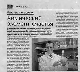 6) Химический элемент счастья // Газета «Правда Востока» от 10 января 2016 г.