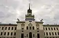 Первое здание было построено в 1889—1894 годах по проекту архитекторов И. Т. Барютина и С. Ф. Кулагина, при участии С. М. Жарова. Фасад украшал портик, по бокам которого находились башни, украшенные двумя квадригами всего с восемью конями. К концу 1940-х годов здание обветшало, а в 1949 году сгорело[1].