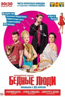 «Бедные люди» — история интеллигентного неудачника, который живёт в коммунальной квартире Петербурга, работает «литературным негром» у Ольги Бузовой и пишет от её лица автобиографию. Чисто питерский комедийный сериал, рассказывающий историю не только писателя Вени и Ольги Бузовой, но и жителей коммунальной квартиры: провинциальной учительницы танцев, по ошибке ставшей стриптизёршей, дилера, завязавшего с криминальным прошлым и суррогатной матери, вынашивающей ребёнка за деньги.