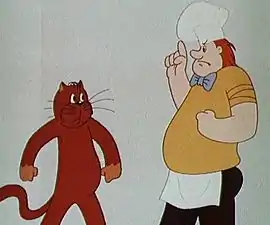 «Лучшему повару» — такой диплом в рамке вручили повару и сфотографировали. Когда журналисты ушли, повар взялся за приготовление обеда. Но тут вылез мышонок, а повар позвал своего любимца кота. В процессе долгой погони кот полностью разгромил кухню и кладовку с продуктами, поэтому повар не смог ничего приготовить.