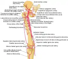 - Латеральные и медиальные артерии огибающие бедренную кость