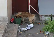 - Наличие кормовой базы, формируемой остатками пищи в мусорных контейнерах, а также намеренным прикармливанием собак, что при отсутствии применения стерилизации сук усиливает темп размножения животных.[69] В частности, Алексей Верещагин, руководитель московской службы по учёту численности бездомных собак, называет свалки в качестве «пищевого ресурса» бездомных собак, который он призывает ограничить.[70] Доктор биологических наук, редактор «Красной книги Москвы» Борис Самойлов связывает рост численности собак в Москве с появлением большого количества автостоянок, которые охраняют подкармливаемые охранниками, но юридически никому не принадлежащие собаки[71]. Директор ГУП «Заказчик внешнего благоустройства СВАО», которое занимается отловом бездомных животных в СВАО г. Москвы, Андрей Акимов также называет в качестве основных пунктов бесконтрольного размножения бездомных собак огороженные и охраняемые территории (такие, как автостоянки, строительные площадки, промышленные предприятия, больницы и т. д.). Отмечаются проблемы размножения в геометрической прогрессии прикормленных щенков, миграции разрастающейся стаи за счёт недостатка изначальной кормовой базы, а также проблема стаи, остающейся на месте после того, как строительство завершается и охранники покидают площадку.[72]
