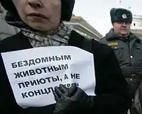 В 2005 году 40 деятелей культуры, среди которых Лев Лещенко, Владимир Винокур, Константин Райкин, направили письмо мэру Москвы, в котором они выразили беспокойство «истерией, подогреваемой несколькими малокомпетентными зоозащитниками, призывающими спасти природу путём уничтожения безнадзорных собак, составляющих её часть».[6]