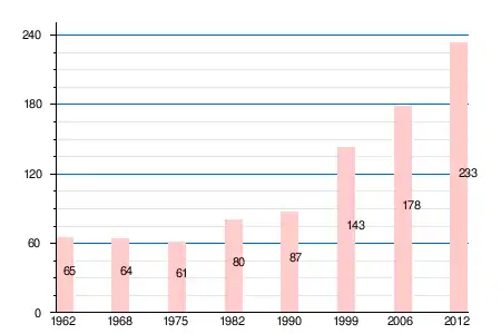 | 1962 | 1968 | 1975 | 1982 | 1990 | 1999 | 2006 | 2011 | 2012 |