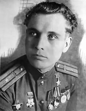 - на гранитной стеле в Нижегородском кремле среди нижегородцев — Героев Советского Союза, погибших в боях за свободу и независимость нашей Родины;