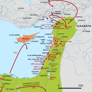 В 1263 году египетские войска под личным командованием султана Бейбарса опустошили области Акры, Тира и Триполи.