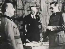 ![]() Х. Л. Бейгбедер (справа) принимает присягу в присутствии Ф. Франко | |
