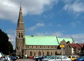 Подъездная дорога, жилая улица рядом с Хай-стрит, с церковью Святого Эдмунда