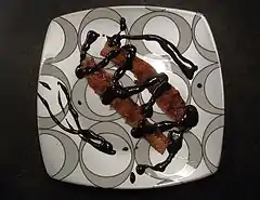 Другими из возможных вариантов также являются кубики из шоколадного бекона, основанные на рецепте «сладостей из бекона и взбитых сливок», опубликованном в New York Times[14], и бекон с коричневым сахаром, который используется для украшения мартини[15].