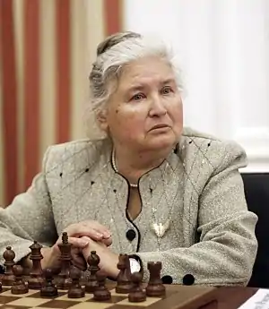 ![]() На турнире, посвященном юбилею 5-й чемпионки мира Ноны Гаприндашвили, 2011 год | |