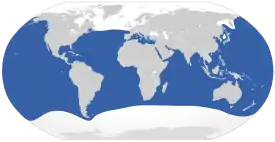 Её можно встретить в районе Восточного побережья США, у берегов Кубы, Багамских островов, Аргентины, Бразилии; в Восточной Атлантике — от Франции до ЮАР; в Индийском океане белая акула появляется в Красном море, у берегов Сейшел, а также у острова Реюньон и в водах Маврикия; в Тихом океане — от Дальнего Востока до Новой Зеландии и западного побережья Америки[7].