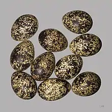 В кладке 5—20 грушевидных пёстрых яиц — бледно-желтоватых и охристо-жёлтых с коричневыми пятнами и точками. Самка на гнезде вплотную подпускает человека и при опасности «отводит»; самец охраняет участок. Самка насиживает яйца 21—22 дня.
