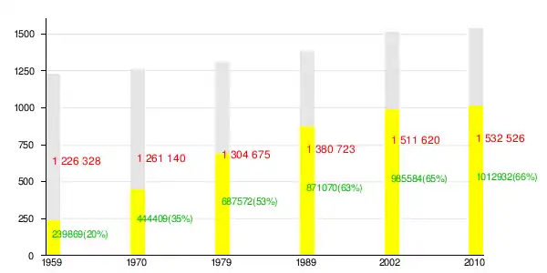 Всё и городское население (его доля) по данным Всесоюзных и Всероссийских переписей[17][18]: