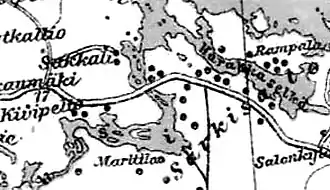На финской карте 1923 года деревня обозначена, как группа хуторов Сяркисало у моста через реку Вуокса.
