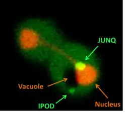 - Kaganovich D., Kopito R., Frydman J. Misfolded proteins partition between two distinct quality control compartments (англ.) // Nature. — 2008. — Vol. 454, iss. 7208. — P. 1088—1095. — doi:10.1038/nature07195. — PMID 18756251.