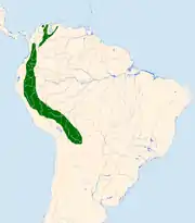 Околоводный вид, обитает в Южной Америке (Боливия, Колумбия, Эквадор, Перу, Венесуэла). МСОП присвоила виду охранный статус «Вызывающие наименьшие опасения» (LC), то есть непосредственной угрозы его существованию не усматривается[3].