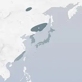 Во время гнездования птицы встречались в Забайкалье близ посёлка Дарасуна, расположенного в бассейне нижнего течения реки Нерчи, в районе озера Ханка. Весной, когда птицы мигрируют, они встречались на полуострове Де-Фриза в Южном Приморье, а также на острове Большой Пелис в заливе Петра Великого; осенью — в Забайкалье, в двухстах километрах севернее посёлка Дарасуна, в долине реки Каренги (притока Витима), в низовьях реки Барабашевки в Хасанском районе Приморского края, на острове Большой Пелис в заливе Петра Великого.