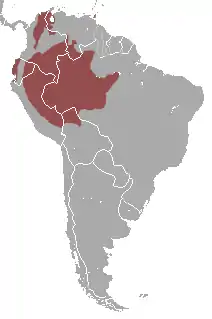 Встречаются на северо-западе Южной Америки, включая Эквадор, Колумбию Венесуэлу, восток Перу и Бразилию.[2]