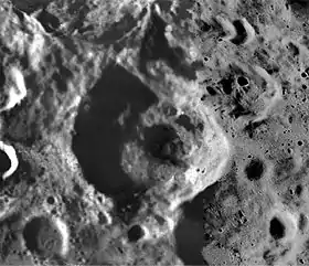 Кратер окружён несколькими крошечными кратерами, на юге это привело к частичному разрушению его вала. В северо-западной стене, где основание задето кратером Иоффе, есть пролом. Весь поперечник кратера лежит примерно на одном уровне. Высота вала над окружающей местностью составляет 1200 м[1], объем кратера — примерно 3000 куб.км.[1]. Центральная часть чаши кратера несколько приподнята; возможно, это поднятие является остатками центрального пика.