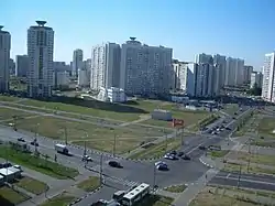 ![]() Дома на Белореченской улице в Москве, вид из Дюссельдорфского парка | |
