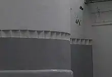Многоярусная башня-вестверк присоединена к главному фасаду без перевязки кладки, что свидетельствует о том, что она была возведенена позднее основного объёма, но вскоре после него.