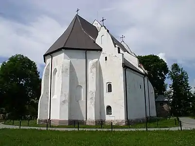 В Новогрудке (Гродненская область) в первой четверти XVI века был построен собор Св. Бориса и Глеба, который первоначально, до перестроек XVII—XIX вв., являлся трёхнефным двупрясловым с пятигранной одночастной апсидой строением, перекрытым остроконечной кровлей[13][2].
