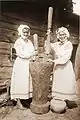С XIX в. на селе и в городе были также популярными вязаные головные уборы из льняной или шерстяной пряжи, часто в форме колпака. вязать их было удобно, как длинный чулок, края которого отгибали несколько раз. Во второй половине XX в. они значительно распространились[55].