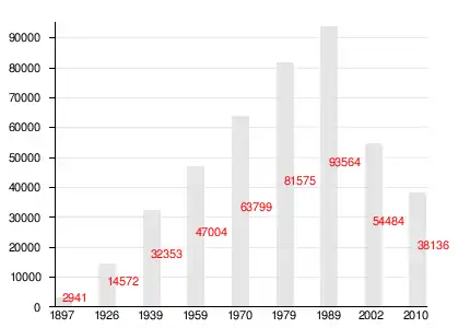 | 1897[8] | 1926[9] | 1939[10] | 1959[11] | 1970[12] | 1979[13] | 1989[14] | 2002[15] | 2010[1][2] |