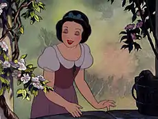 Белоснежка (англ. Snow White, нем. Schneewittchen) — вымышленный персонаж и главная героиня первого полнометражного мультфильма студии Уолта Диснея «Белоснежка и семь гномов», снятого в 1937 году по мотивам одноимённой сказки братьев Гримм[18]. Также Белоснежка является первой официальной диснеевской принцессой[19] и самой юной из них: ей 14 лет.