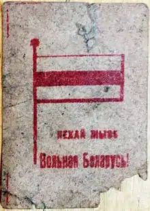 Бе́ло-кра́сно-бе́лый флаг (белор. Бела-чырвона-белы сцяг, классич. белор. Бел-чырвона-белы сьцяг, сокр. разг. БЧБ) — официальный флаг Белорусской Народной Республики (1918—1919), в 1991—1995 годах — государственный флаг Республики Беларусь. Традиционно флаг принято считать национальным: это мнение разделяют некоторые историки как прошлого, так и настоящего[1][2][3][4], тем не менее в наши дни часть общества не согласна с таким статусом флага, государство его официально не использует. По закону 1991 года «О Государственном флаге Республики Беларусь» представляет собой полотнище, состоящее из трёх горизонтальных равновеликих полос — белой, красной и белой, с соотношением ширины к длине как 1:2[5].