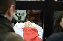 14 мая 1995 года по инициативе президента Республики Беларусь Александра Лукашенко был проведён первый в истории независимой Белоруссии референдум. На голосование было вынесено 4 вопроса, в том числе — об установлении новых флага и герба. По официальным данным, за принятие новых государственных герба и флага проголосовало 75,1 % принявших участие в референдуме, против — 20,5 %[52]. По мнению некоторых юристов, референдум противоречил Конституции и действующему законодательству[53][54][55][56]. 16 мая бывший заместитель заведующего сельхозотделом Могилевского обкома КПБ, управляющий делами президента Республики Беларусь Иван Титенков снял с крыши Дома правительства бело-красно-белый флаг. Флаг был разорван на сувениры, на его кусках управделами расписывался лично[57][58].