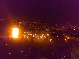 | Костёр и фаер-шоу на праздновании Белтейна под Эдинбургом, Шотландия | |