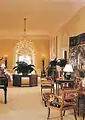 Посетители, приходящие в Белый дом на экскурсию, имеют возможность увидеть самые красивые и исторические помещения, включая Восточную комнату, Зелёную комнату, Голубую комнату, Красную комнату и Столовую для официальных мероприятий. Эти помещения используются президентом и Первой леди для приёма гостей из других стран. В Овальном кабинете президент осуществляет свою деятельность по управлению страной — подписывает законопроекты и правительственные распоряжения и встречается со своими сотрудниками, посетителями и гостями[21].