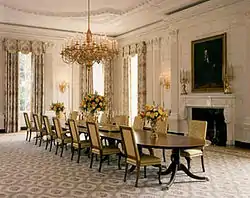 Он представляет собой особняк в палладианском стиле (архитектор Джеймс Хобан). Строительство началось 13 октября в 1792 году[18], закончилось 1 ноября 1800 года. Здание называли по-разному: «Президентским дворцом», «Президентским особняком» или «Президентским домом»[19]. В 1811 году зарегистрировано первое свидетельство того, что публика назвала его «Белой палатой»[20].