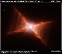Так или иначе, но достаточно длительный период относительно спокойного истечения вещества с поверхности красных гигантов заканчивается сбросом его оболочки и обнажением его ядра. Такая сброшенная оболочка наблюдается как планетарная туманность. Скорости расширения протопланетарных туманностей составляют десятки км/с, то есть близки к значению параболических скоростей на поверхности красных гигантов, что служит дополнительным подтверждением их образования сбросом «излишка массы» красных гигантов.