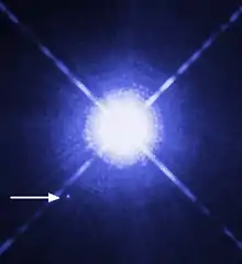 Вторым и третьим открытыми белыми карликами стали Сириус B и Процион B. В 1844 году директор Кёнигсбергской обсерватории Фридрих Бессель, анализируя данные наблюдений, которые велись с 1755 года, обнаружил, что Сириус, ярчайшая звезда земного неба, и Процион периодически, хотя и весьма слабо, отклоняются от прямолинейной траектории движения по небесной сфере[5]. Бессель пришёл к выводу, что у каждой из них должен быть близкий спутник. Сообщение было встречено скептически, поскольку слабый спутник оставался ненаблюдаемым, а его масса должна была быть достаточно велика — сравнимой с массой Сириуса и Проциона, соответственно.