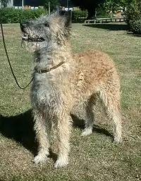 Шерсть грубая и сухая рыжего окраса со следами «угля», в основном на морде и на хвосте, которая выглядит взъерошенной. Длина шерсти приблизительно одинакова на различных частях тела примерно 6 см. Шерсть вокруг глаз и на морде не развита настолько сильно, чтобы голова напоминала голову берюета или бриара. В то же время присутствие оброслости на морде обязательно. Хвост не должен быть в виде султана.